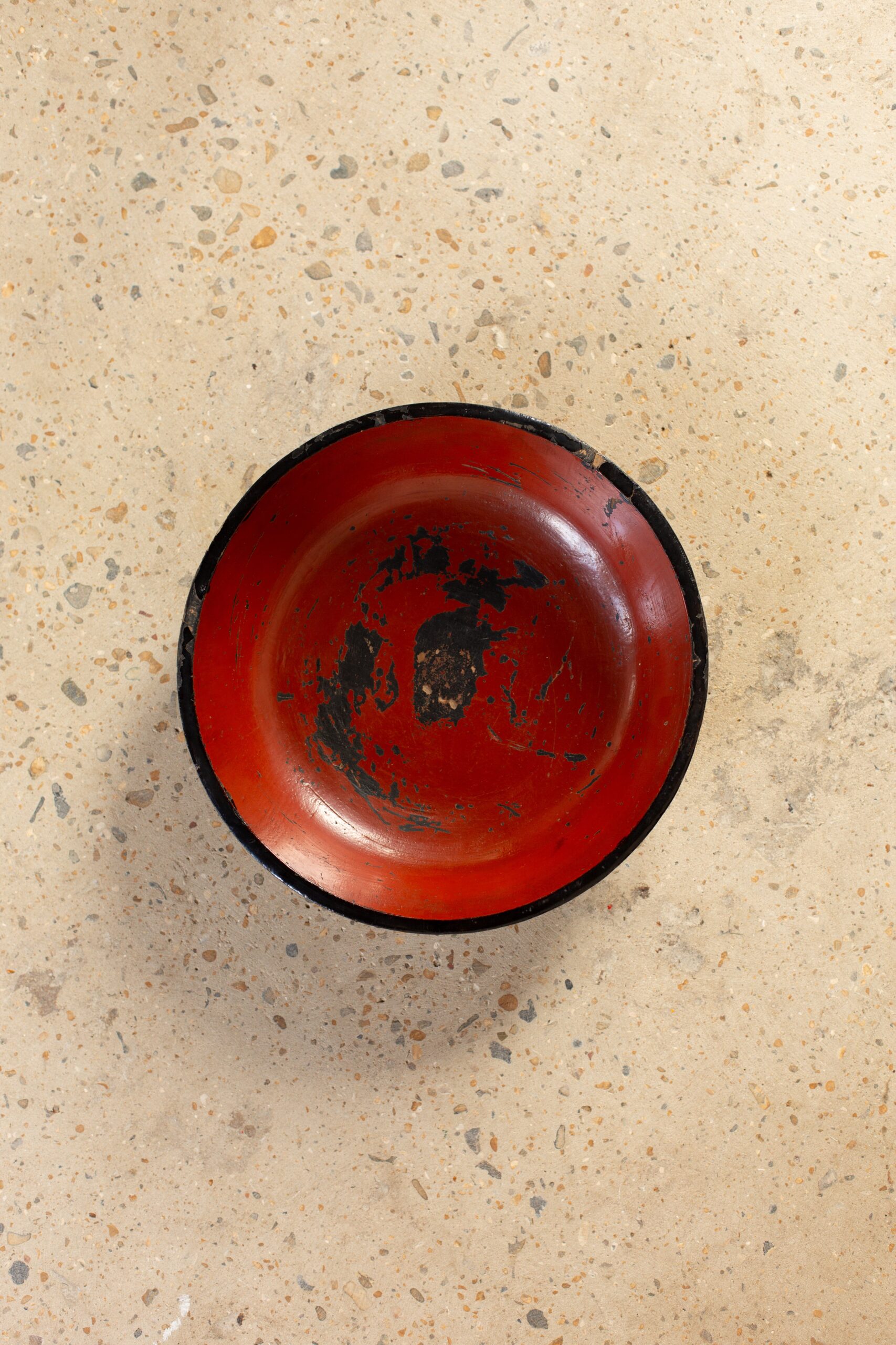 Avemode Antique Japanese Lacquered Wood Bowl – Red & Black, 27cm (c.1900)